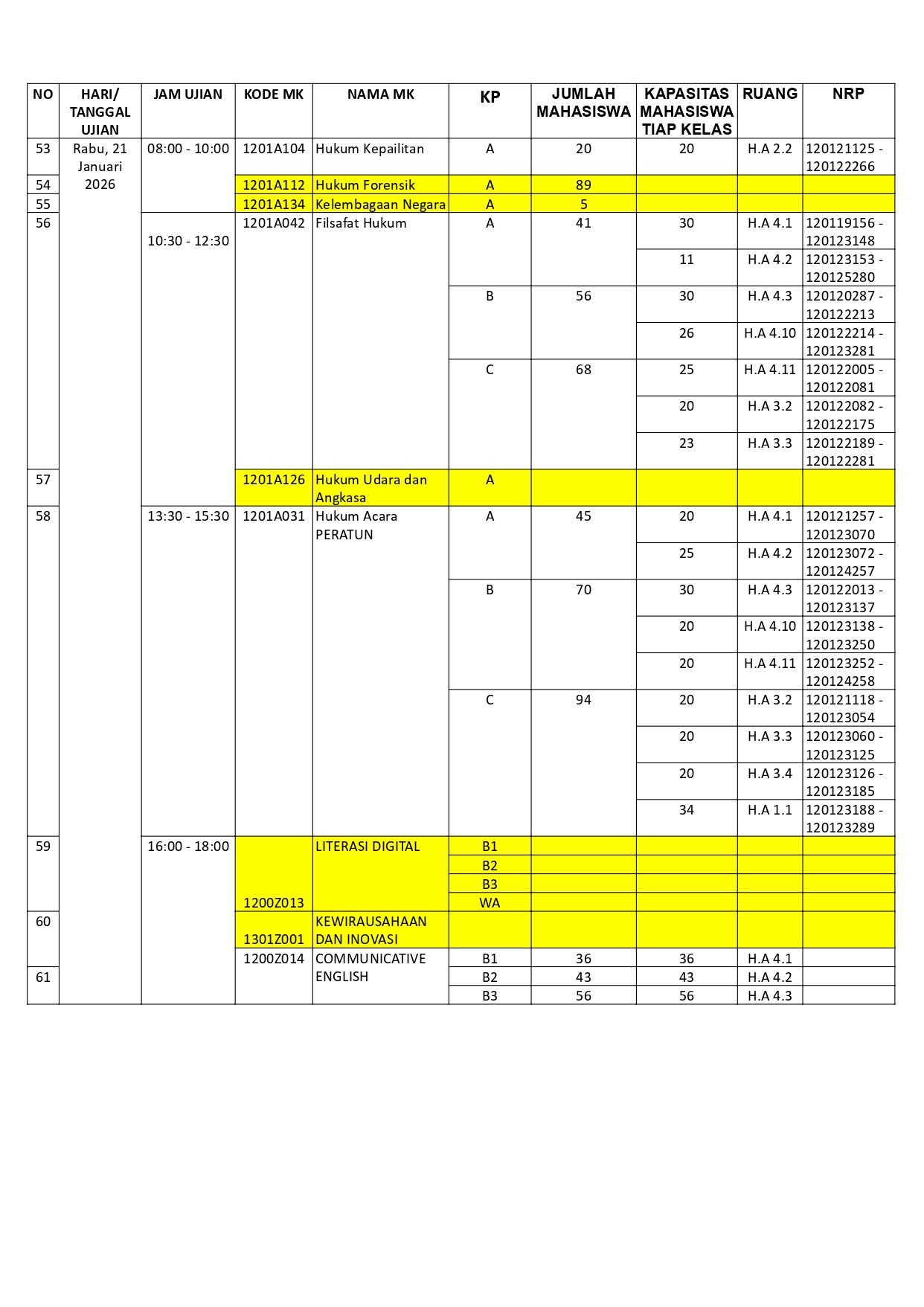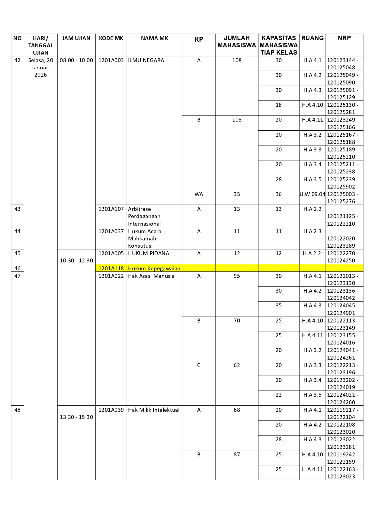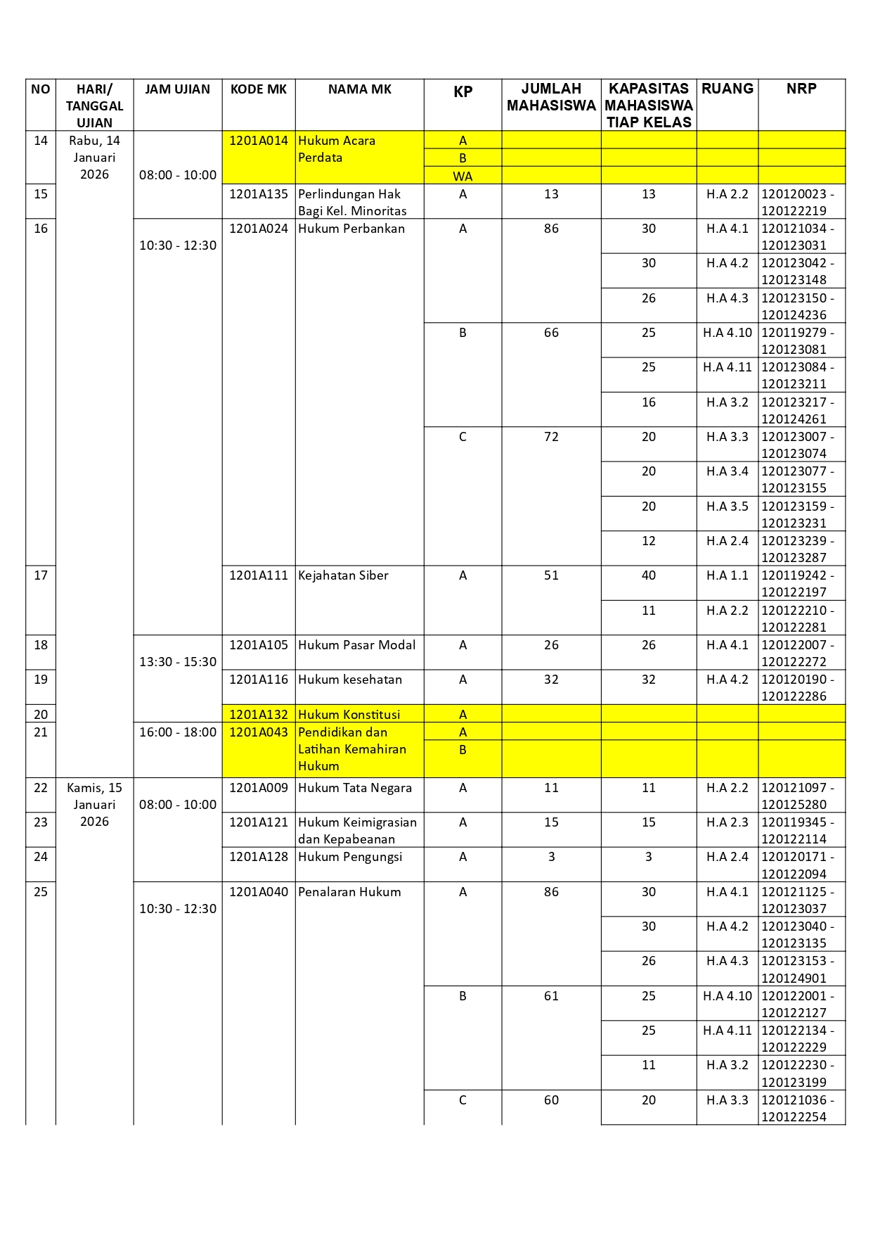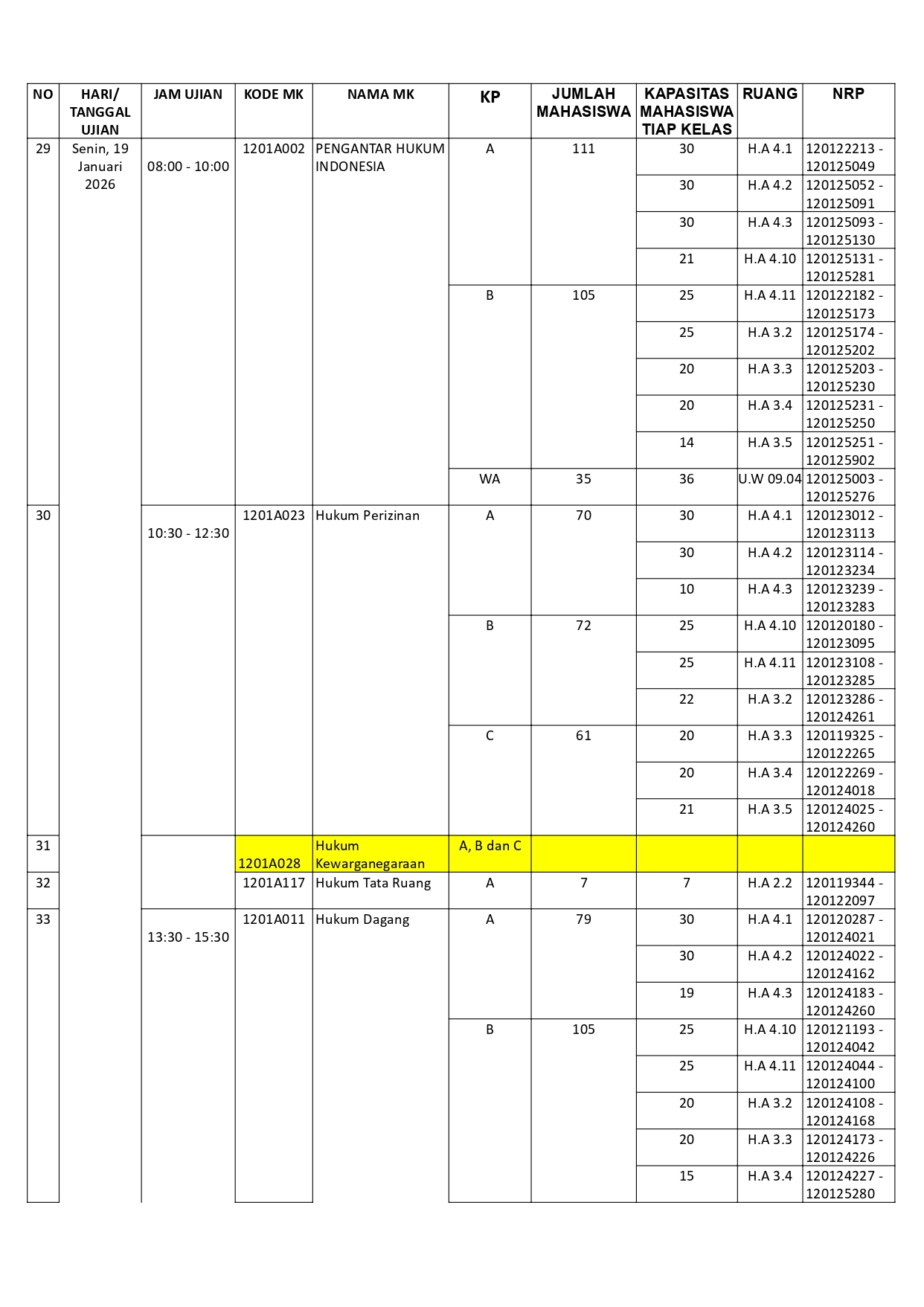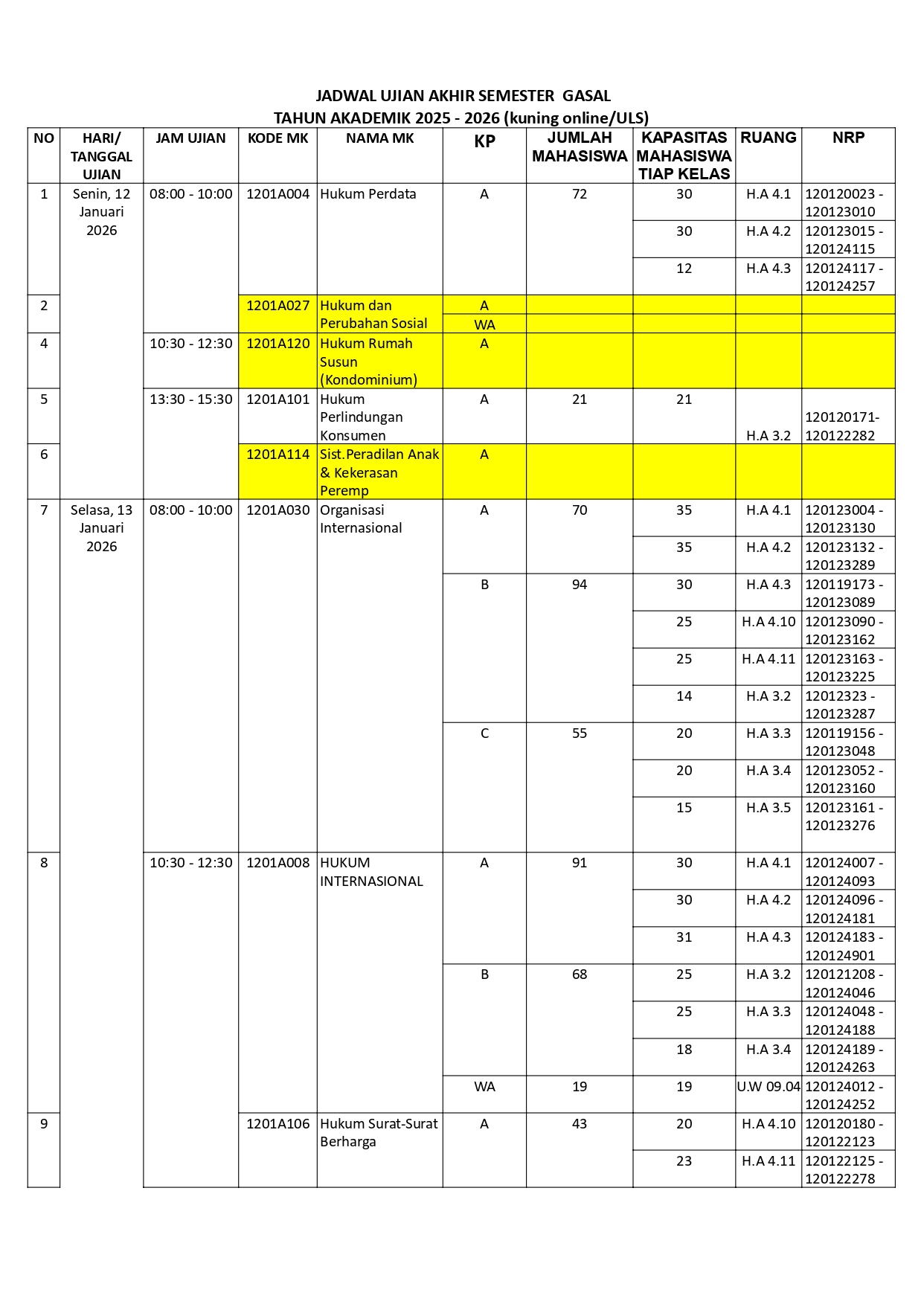 1. Wajib mengikuti Jadwal pelaksanaan ujian meliputi Mata Kuliah, KP dan Ruang ujian;