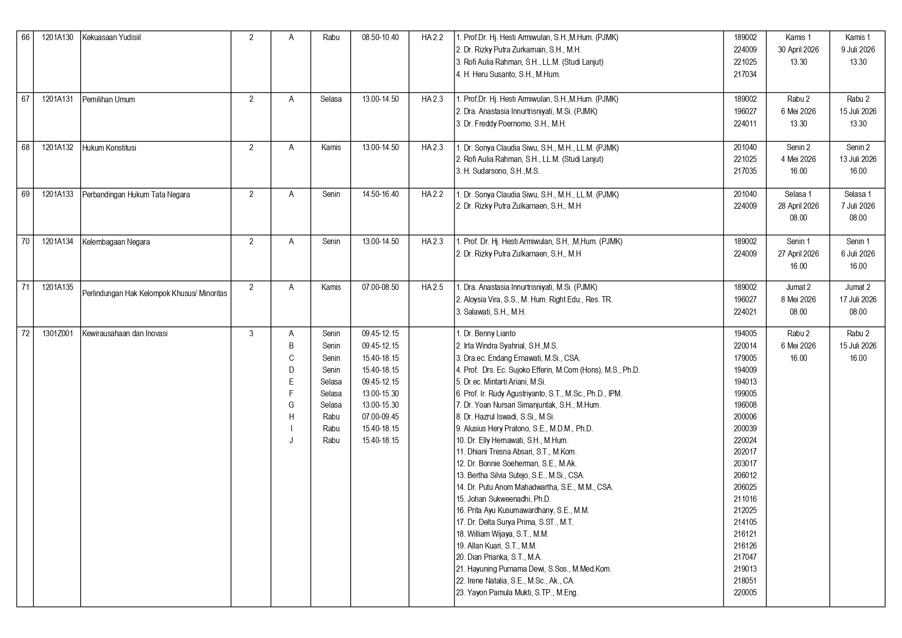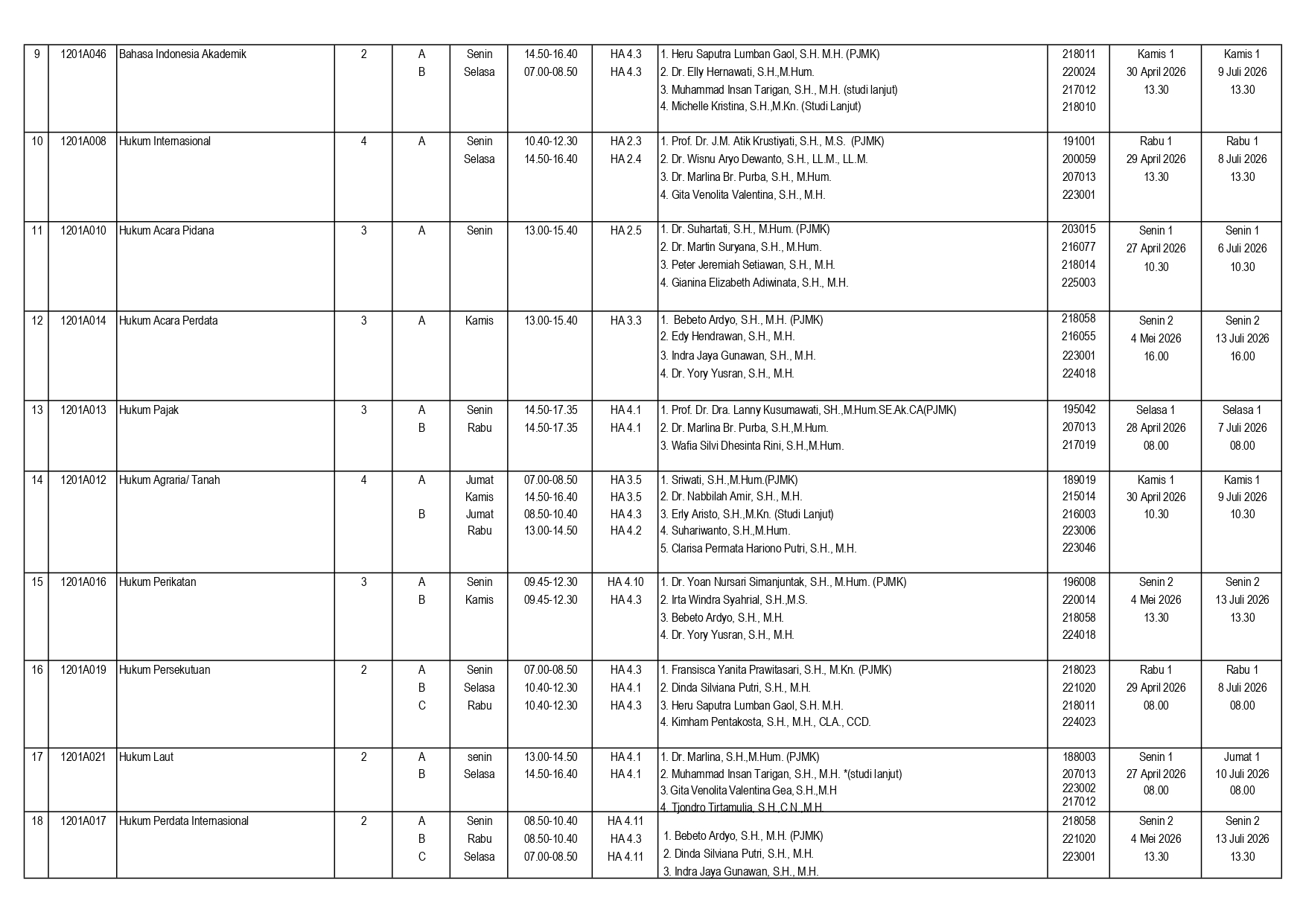 7. Jadwal Ujian dapat fakultas sesuaikan kembali dengan memastikan tidak ada yang mata kuliah yang saling berbenturan. Mohon mahasiswa dapat memastikan kembali jadwal Ujian pada saat menjelang pelaksanaan UTS/UAS.