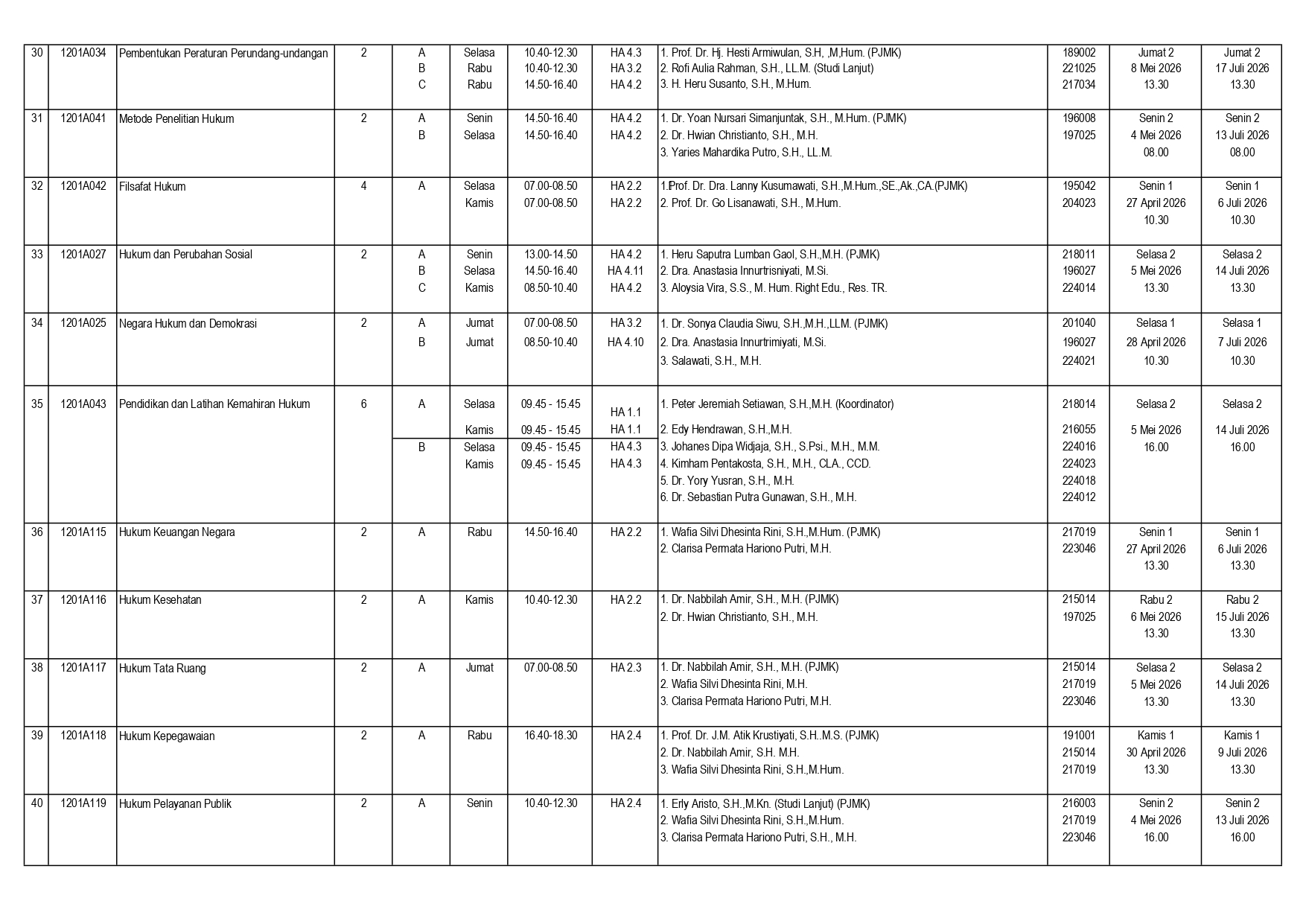 Mahasiswa Angkatan 2023 WAJIB mengambil mata kuliah Hukum dan Perubahan Sosial sebagai mata kuliah prasyarat Metode Penelitian Hukum (MPH) agar lulus tepat waktu.