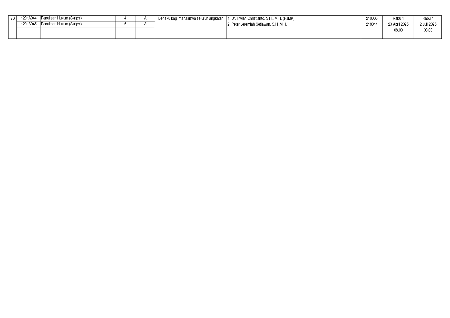 Mahasiswa Angkatan 2024 dan 2025 tidak boleh mengambil mata kuliah Penalaran Hukum dan Filsafat Hukum.